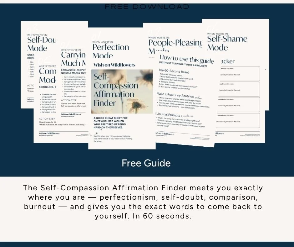 The Self-Compassion Affirmation Finder meets you exactly where you are — whether you're stuck in perfectionism, comparison mode, self-doubt, or quietly carrying way too much — and gives you the exact words to come back to yourself.
